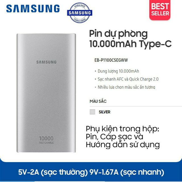 Sạc dự phòng Samsung Fast charger 10.000mAh Type-C - EB-P1100 - Hàng chính hãng