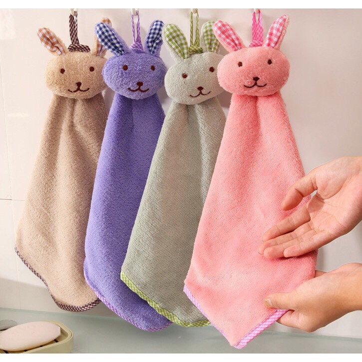 Khăn nhung mềm lau tay họa tiết thỏ xinh xắn